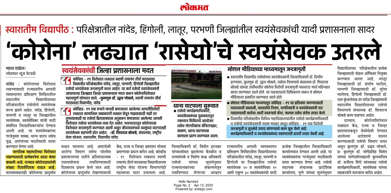 - Beginning of NSS regular activities in college and adopted villages/slum areas.
